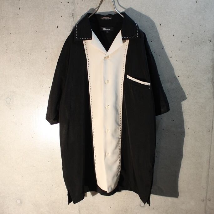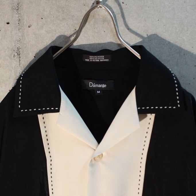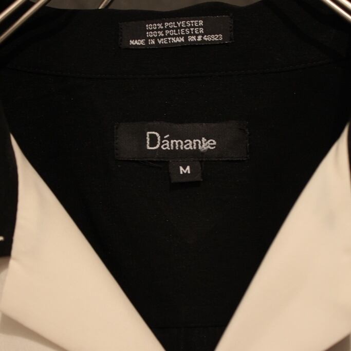黒と白の2トーン、コシの有るポリ生地、サイズはMでジャストからちょいゆるサイズ感です。