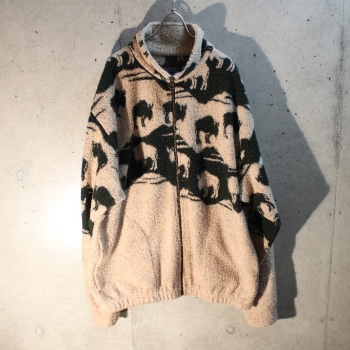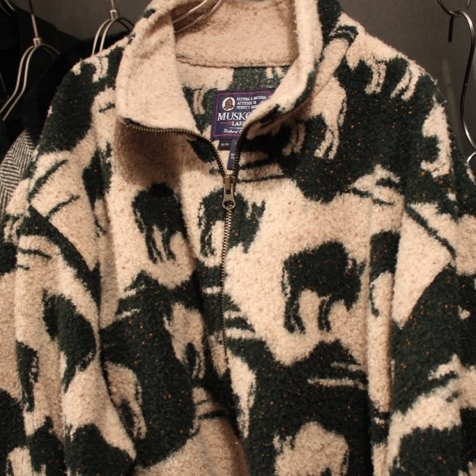 メイドインカナダのアニマルフリース、ふかふかフリースで人気の動物柄、ほのかに緑色が入ってる辺りもポイント高いです。