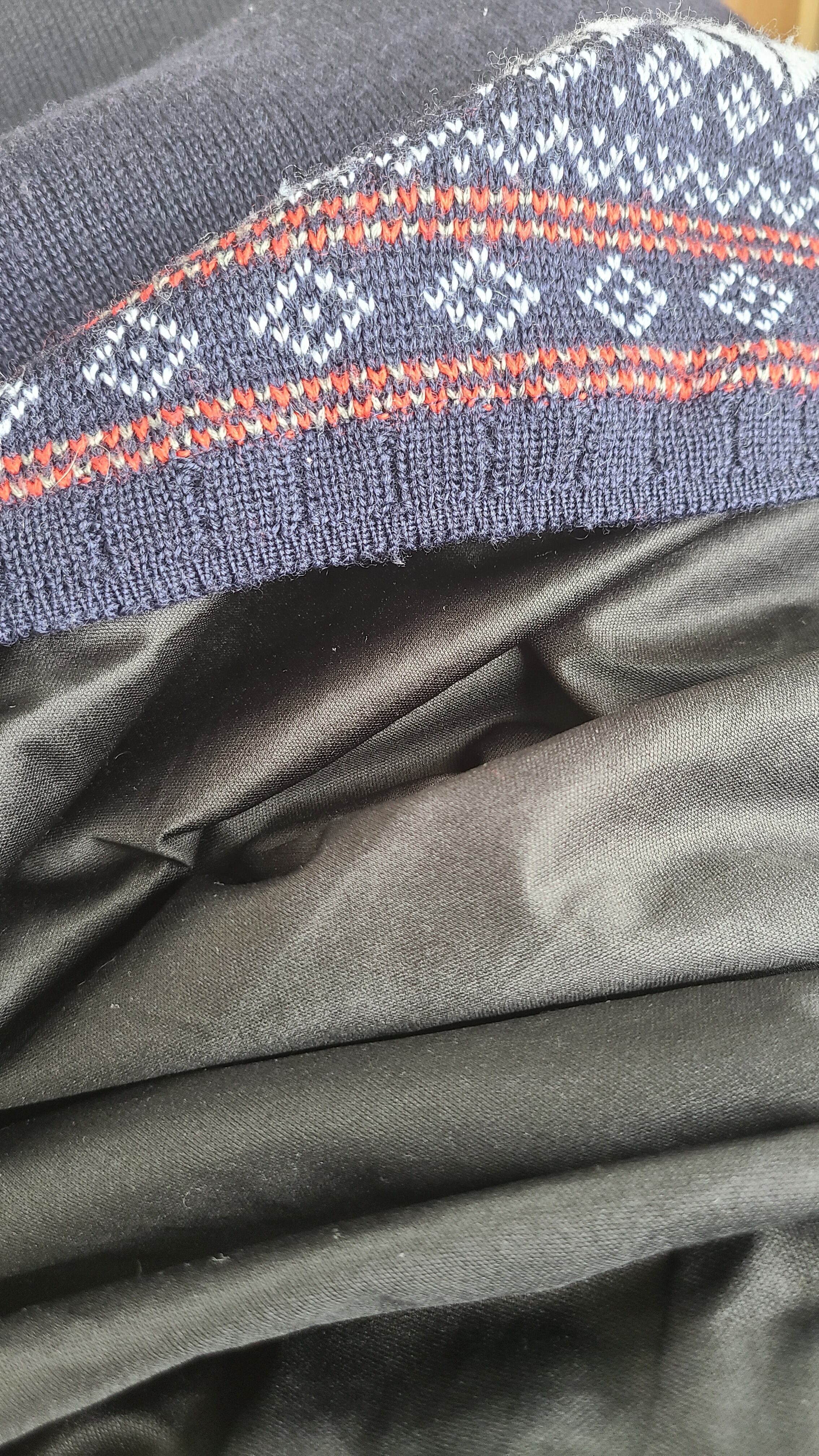 外側はメリノウール生地、内側はポリ生地、スウェットの様な感覚で着れてメッチャ暖かいやつです。ちょいゆるサイズ感なのでサイズ感も好きな人多そうです。右袖に少し汚れがあるので、お安め価格。袖口のリブはへたり無く良い感じです。